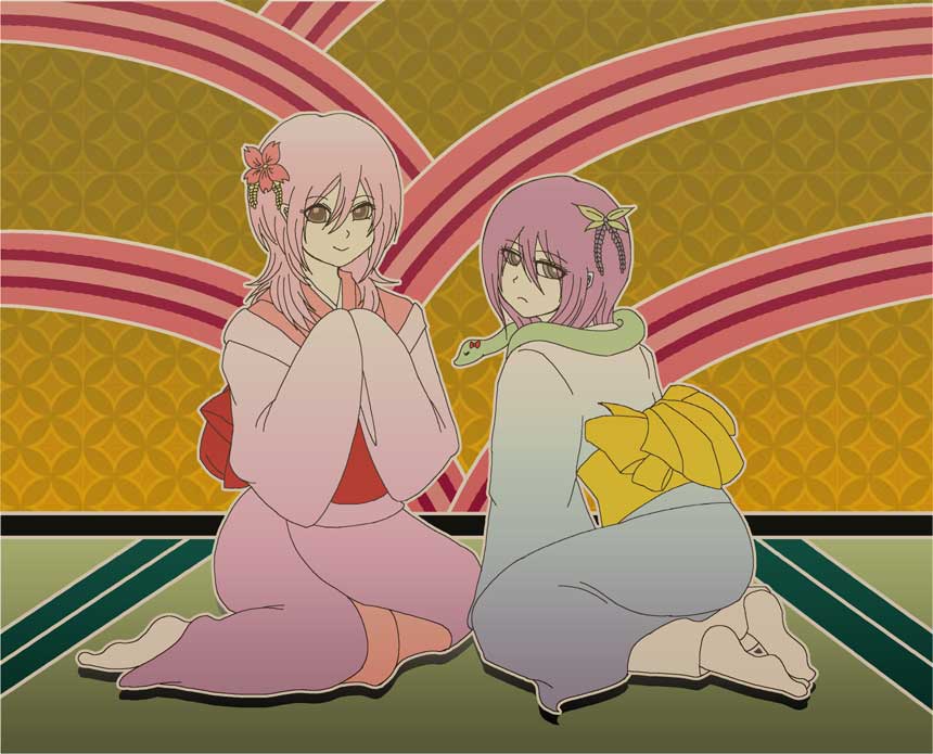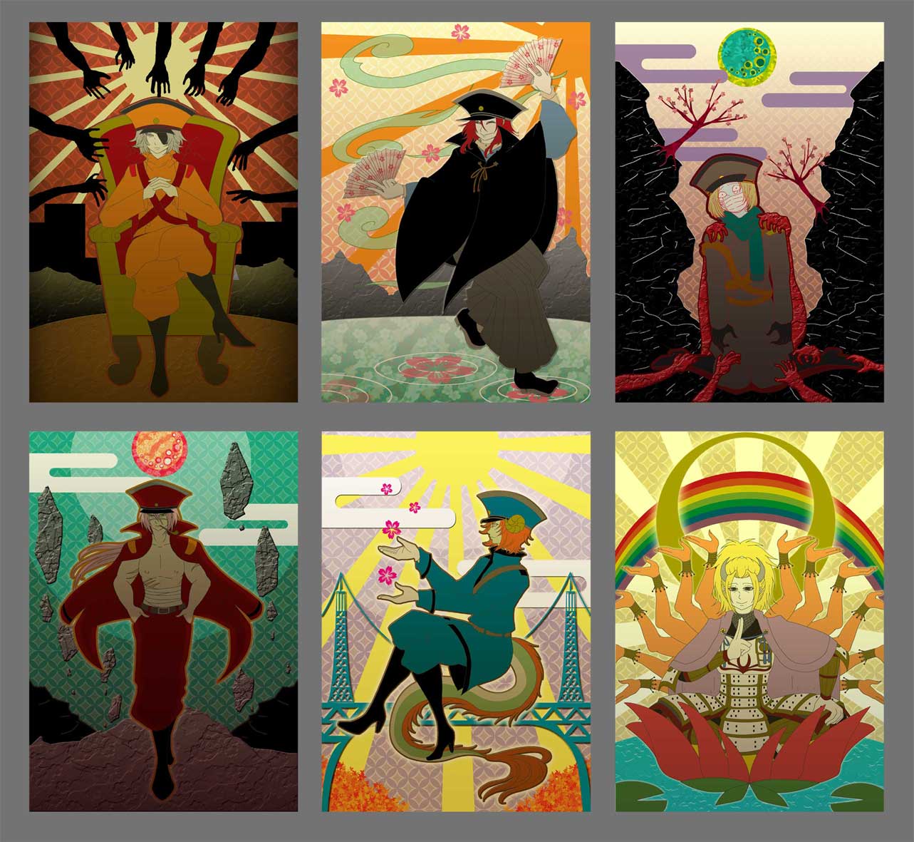 渓谷擬人化の属性別一枚絵(龍王様だけは以前描いたやつ)